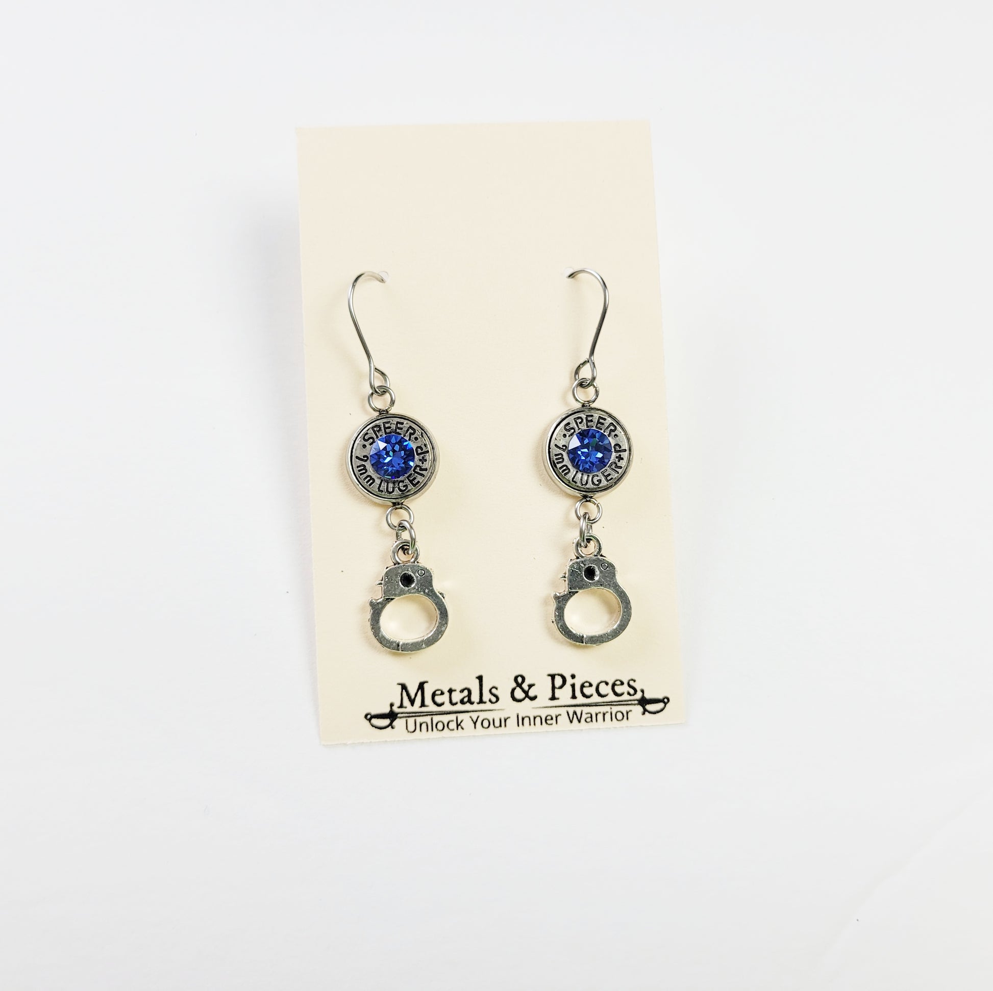 Elevate your style with these sophisticated bullet dangle earrings featuring delicate handcuff charms and sapphire-toned crystals. Designed with a nod to law enforcement professionals and those celebrating September birthdays, these earrings blend meaningful symbolism with elegant craftsmanship. Perfect for adding a refined touch that honors dedication and individuality.